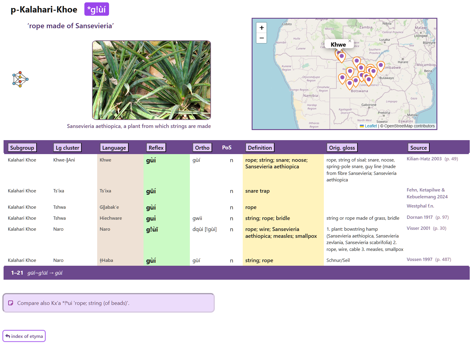 Besides Khoe-Kwadi, we are currently developing dictionaries for other language families: in particular, Pama-Nyungan (Australia) and Mande (Western Africa).